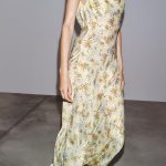 این لباس بلند با پارچه‌ای نرم و لطیف طراحی شده است. دارای یقه V و بندهای عریض است. جزئیات چاپ گلدار بر روی آن وجود دارد. قسمت پشت لباس باز و با بند قابل تنظیم است. دامن لباس به صورت نامتقارن و با برش A شکل طراحی شده است.