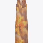 پیراهن میدی با یقه هالتر، بند دار و یقه V. دارای آستر داخلی و زیپ مخفی در پشت است.