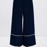 شلوار بلند و گشاد با پاچه‌های کوتاه و کمر بلند. دارای جزئیات دوخت با رنگ‌های متضاد. با دکمه داخلی، قلاب و زیپ در جلو.