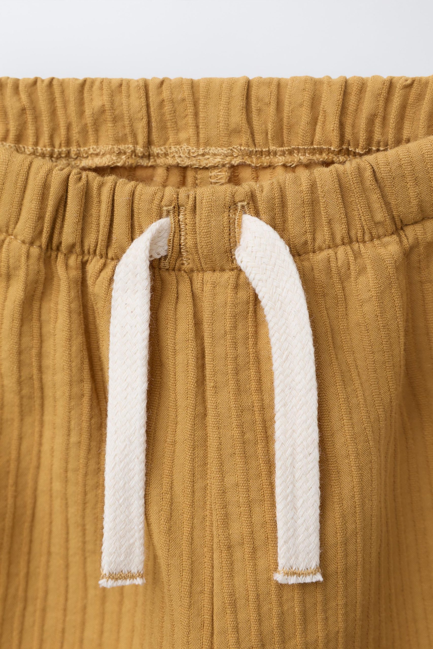 شلوار گشاد با کمر الاستیک و بند جلو، دارای جیب در جلو.