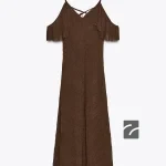 - İnce askılı, V yaka midi elbise. Etek ucu kloş kesim.