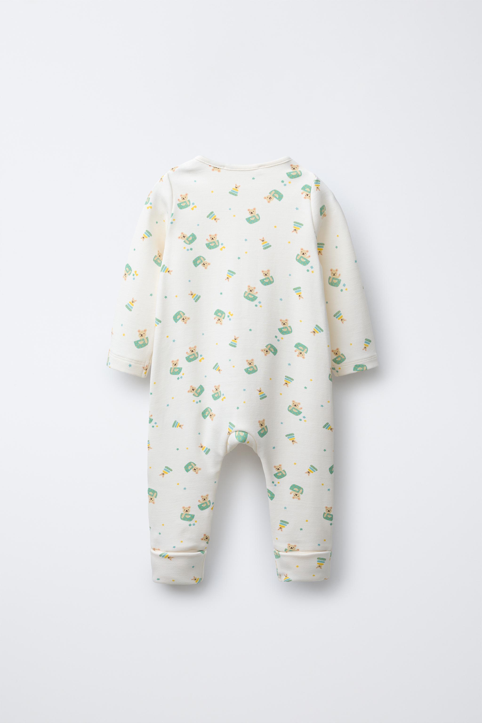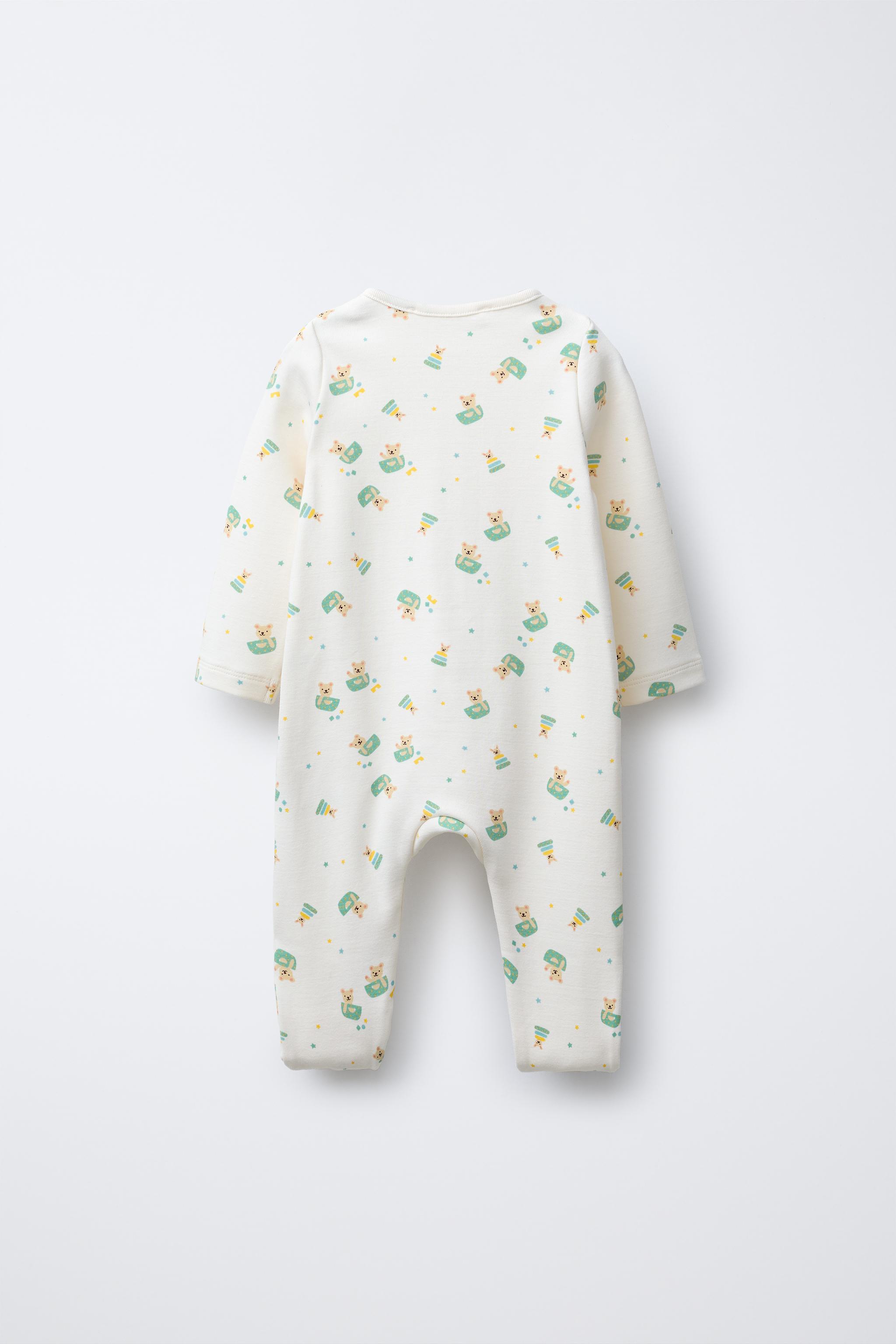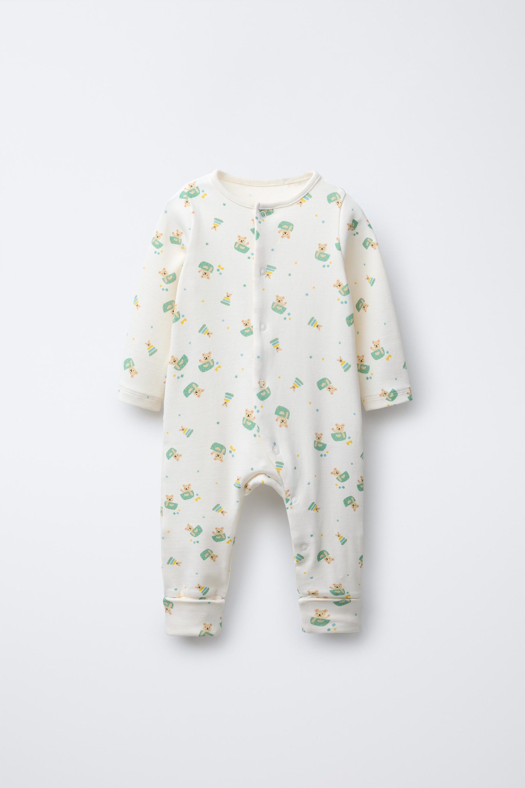پیشبند یقه باز و پیژامه عروسکی از برند زارا (04174630)طرح: آییکیک, جنس: 95% پنبه, سایز: 0-1 (56cm)