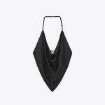 Boyunda ayarlanabilir şeritli, drapeli yakalı üst. Boncuk aplikeli detay. Ayarlanabilir şeritli açık sırt.