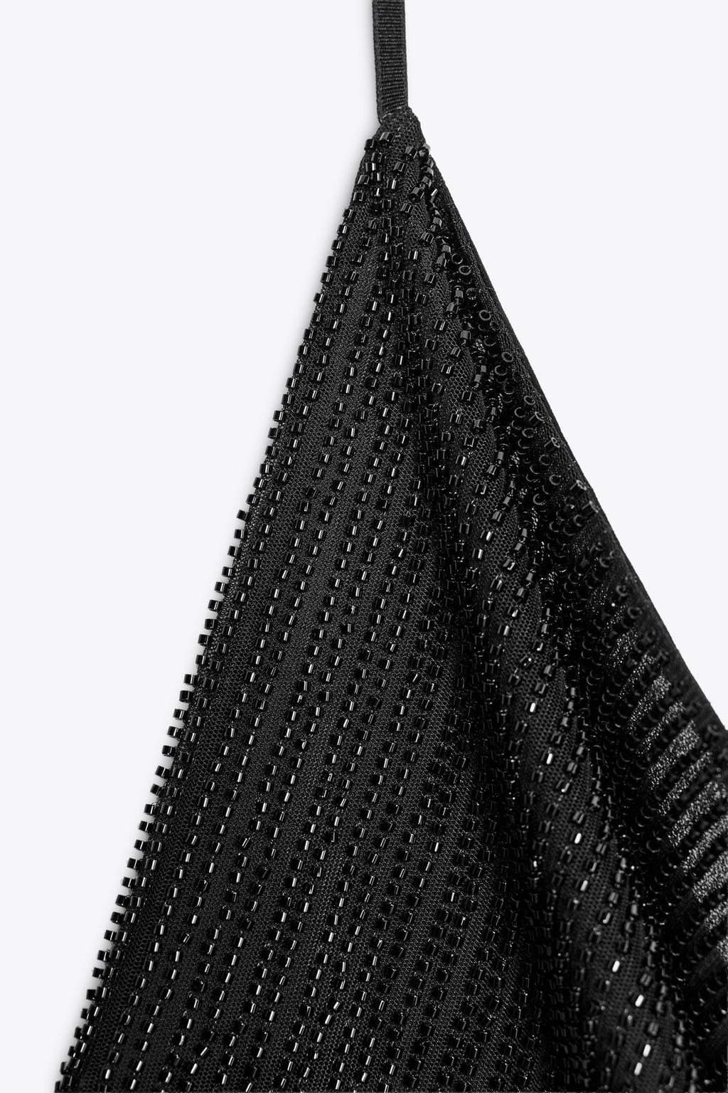 - Boyunda ayarlanabilir şeritli, drapeli yakalı üst. Boncuk aplikeli detay. Ayarlanabilir şeritli açık sırt.