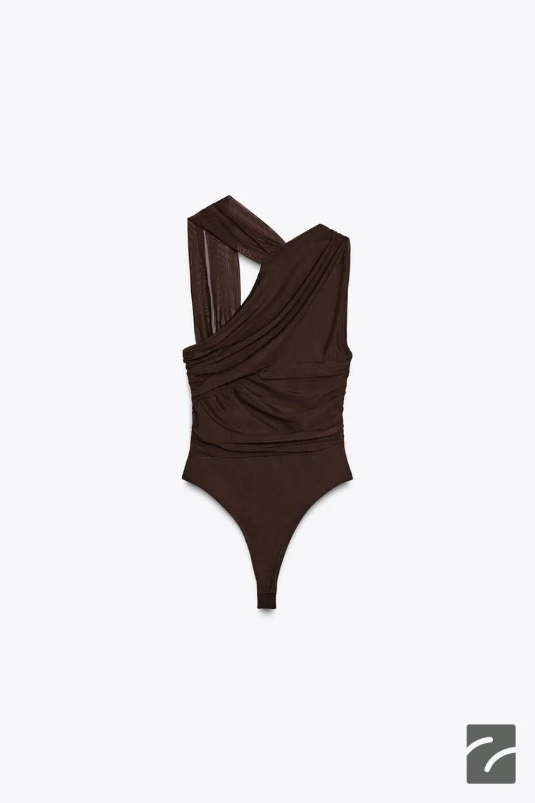 - Asimetrik yakalı ve tek omuzlu body. Alt kısmı çıtçıtlıdır.