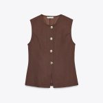 تاپ یقهدار و بدون آستین به سبک یقهدار. دارای جزئیات دکمه فلزی برجسته. لبه پایین با یقه.