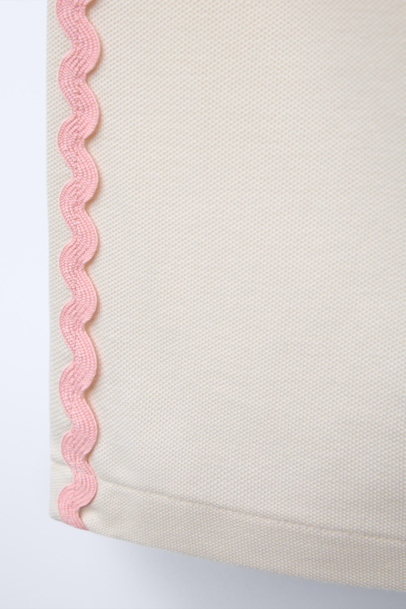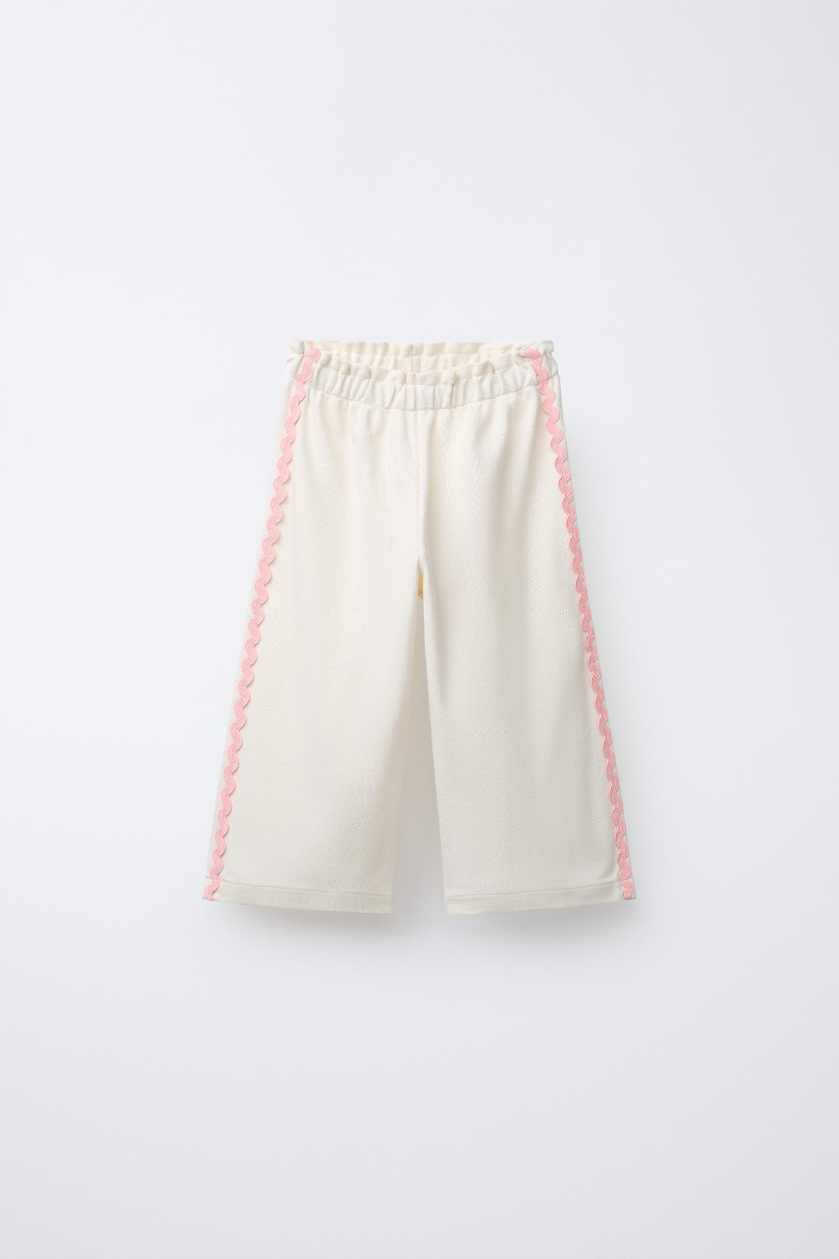 - Elastik belli pantolon. Yanlarda kontrast renkli dalgalı şerit aplikeli. %100 pamuklu kumaş.