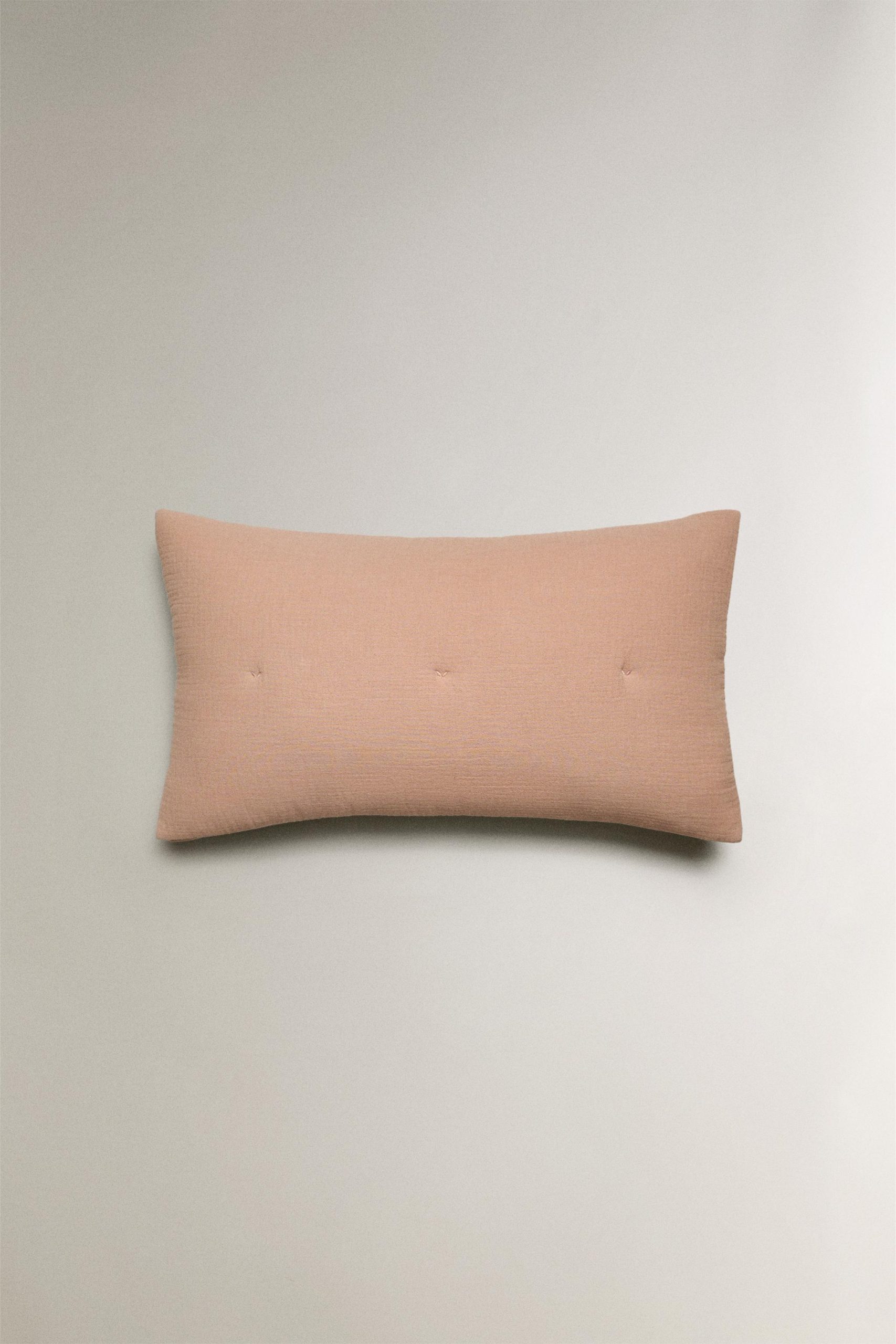 - Çocuk yatak örtüsü için pamuklu muslin kumaştan üretilmiş, düz tasarımlı kırlent kılıfı.