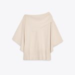 Asimetrik yakalı ve geniş kollu, dökümlü top.