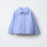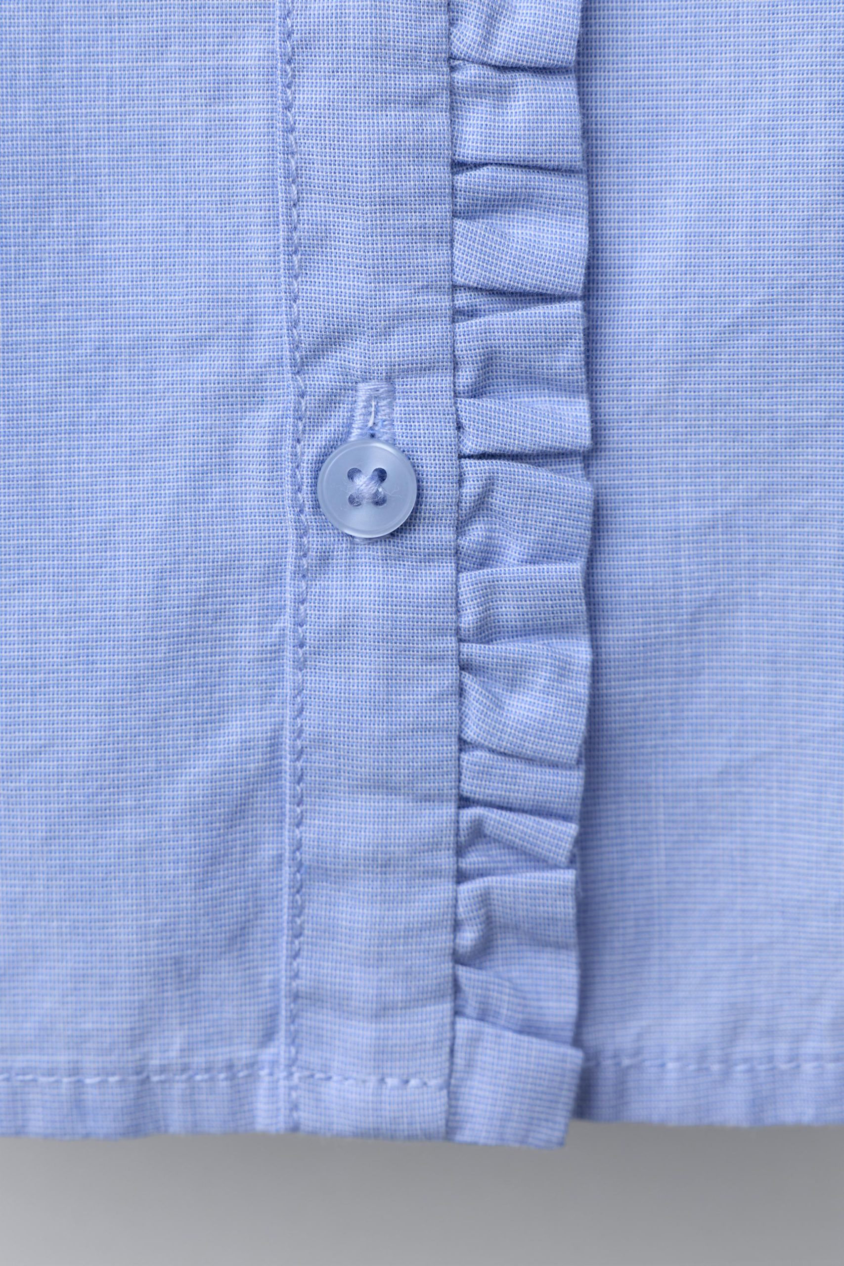 • Gömlek yakalı ve uzun kollu gömlek. Önden düğme kapamalı. Fırfır aplikeli.