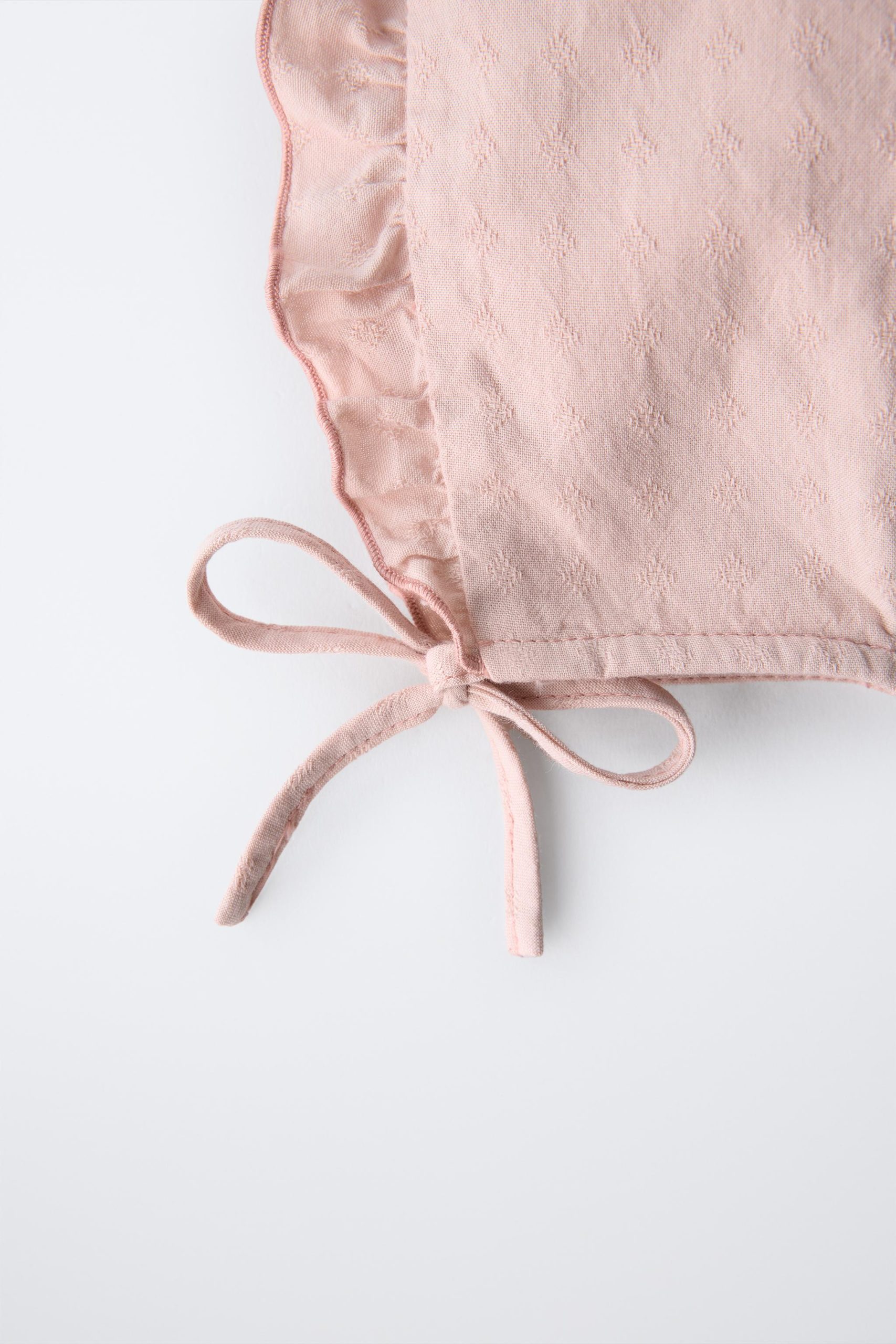 Önde ayarlanabilir bağcıklı başlık. Ense kısmında elastik bant detayı ve uyumlu tonlarda kombinlenmiş işlemeler.