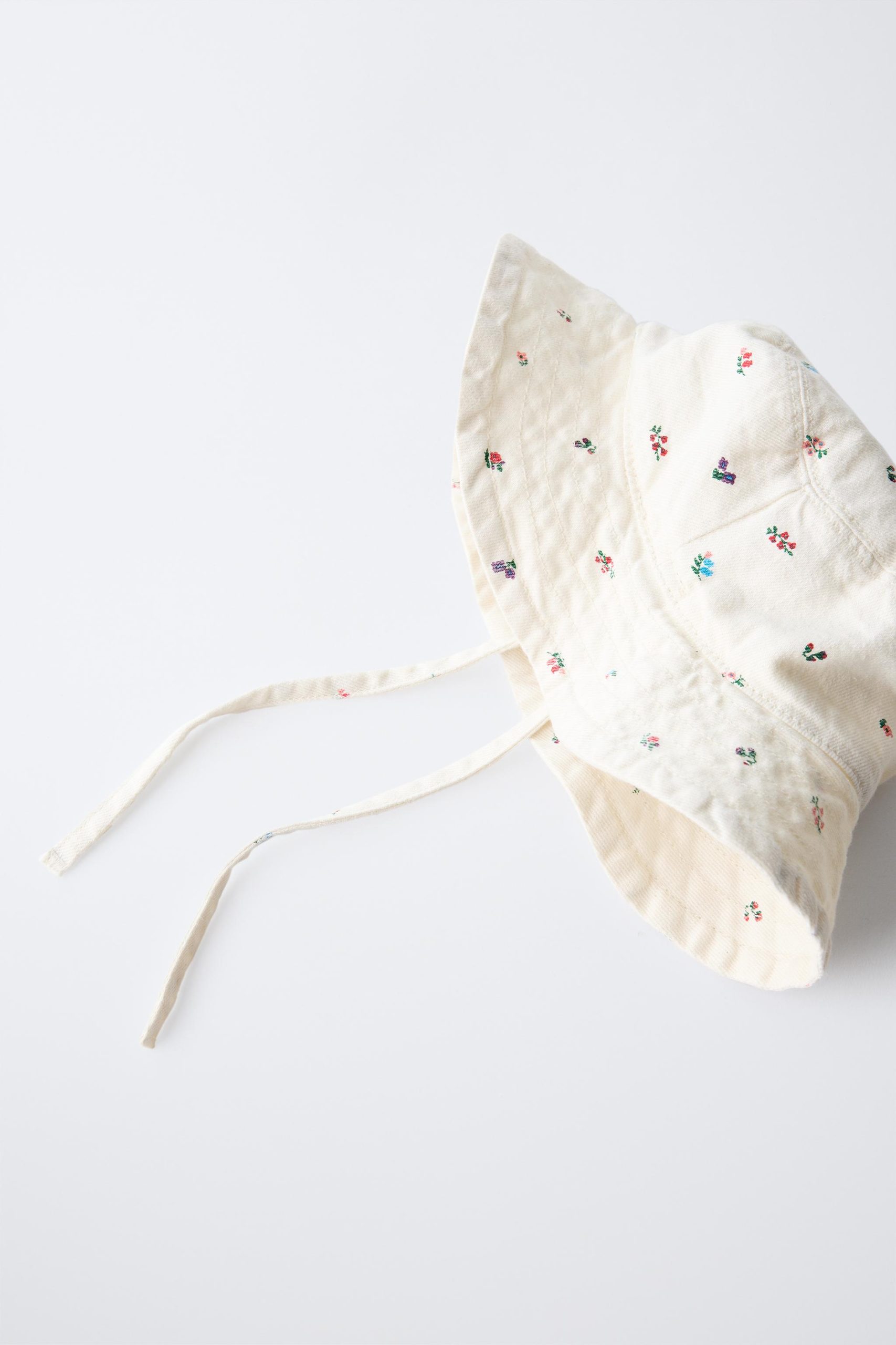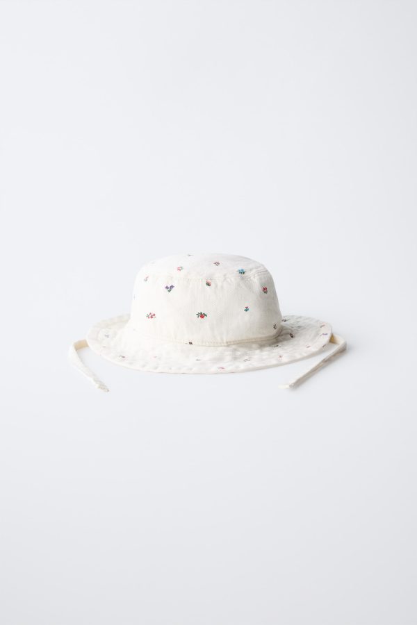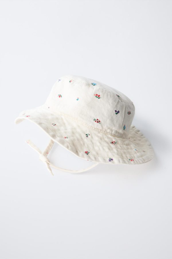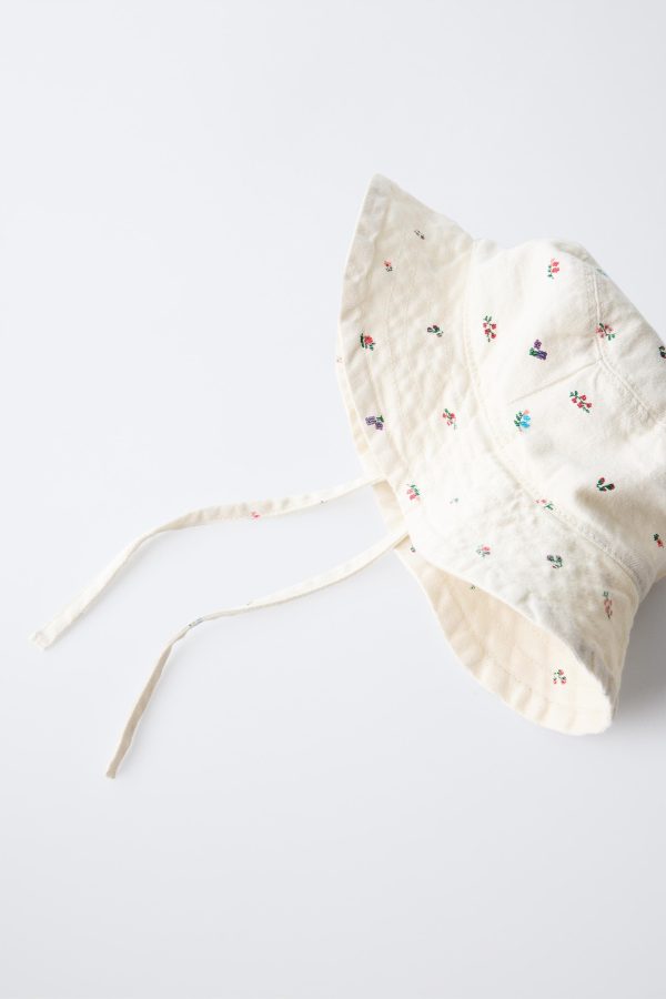 - Ayarlanabilir bağcıklı fitilli kumaş şapka. Çiçek baskılı.