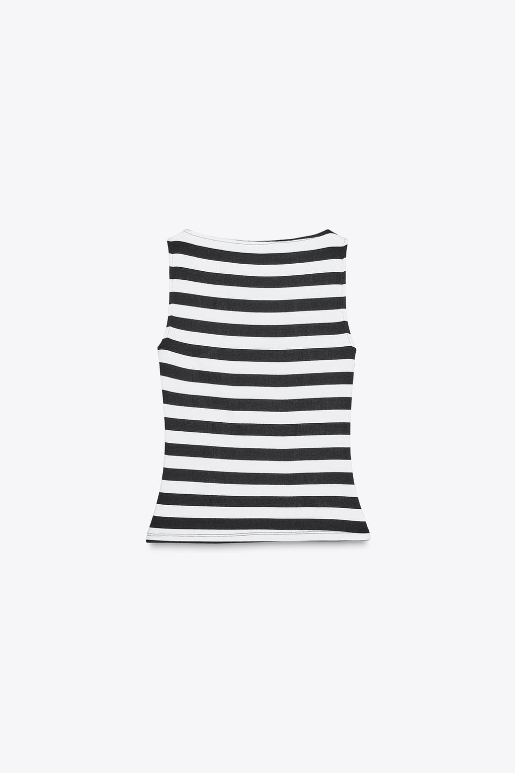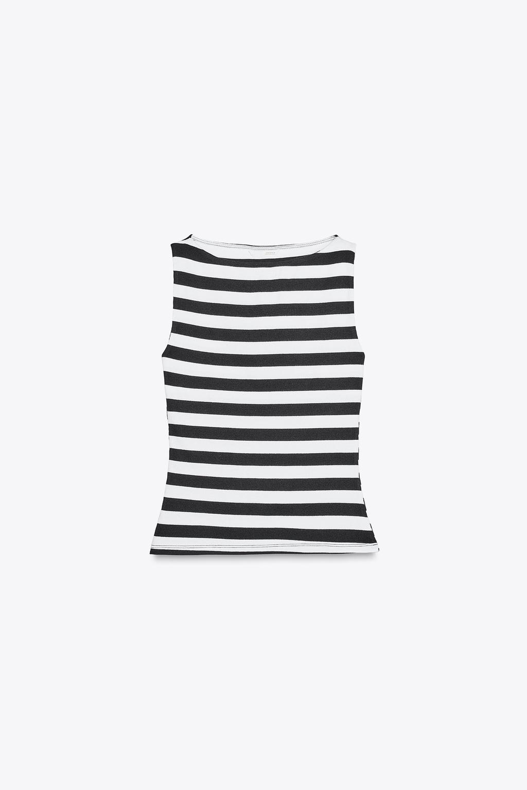 تیشرت کتان کلاسی با یقه قایقی از برند زارا (زنانه) - S, راه راه (01044152)