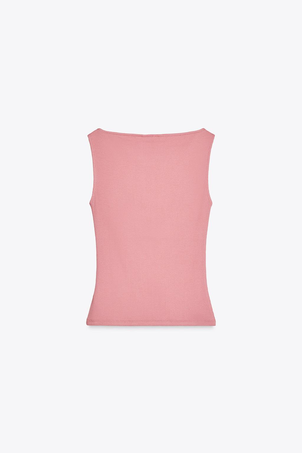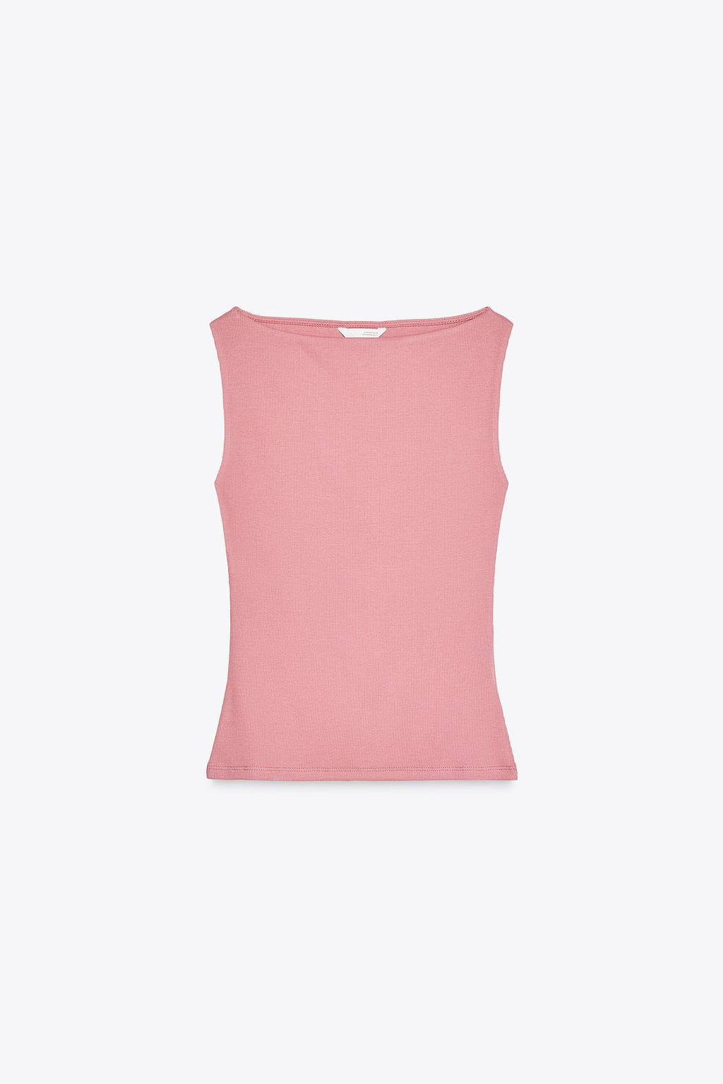 تیشرت کتان کلاسی با یقه قایقی از برند زارا (زنانه) - M, گلبهی (01044152)