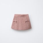 - Elastik belli ve önü fiyonk aplikeli triko etek.