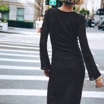 - V yaka, altın rengi aksesuarlı, uzun kollu elbise. İç astarlı.