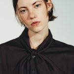 Düğüm detaylı, fular yakalı gömlek. Manşetleri pileli uzun kollu. Sırtta pens detayları. Önden düğme kapamalı.
