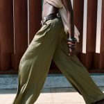 • Elastik belli yüksek bel pantolon. Ön cepli. Çok geniş paçalı.