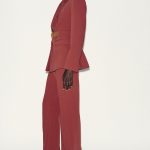 - Vatkaları olan, uzun kollu, klapa yakalı blazer ceket. Kapaklı ön cepli. Önü geniş kemerli, altın rengi tokalı ve gizli çıtçıtlıdır.