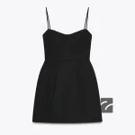 پیراهن کوتاه با یقه دوچرخهای و بندهای نازک قابل تنظیم. این پیراهن دارای آستری داخلی است و از پشت با زیپ مخفی بسته میشود.