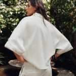 V yaka, kısa, geniş kollu, kıvrımlı, şeritli ve düğmeli, yakalı gömlek. Önden düğme kapamalı.
