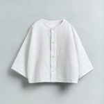 پیراهن یقهدار دوچرخه با آستینهای بلند و گشاد، دارای جزئیات چاک و بسته شدن از جلو با دکمه.