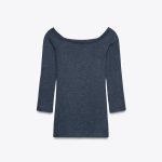 - Üç çeyrek kollu, geniş yaka t-shirt. Düz kesim.