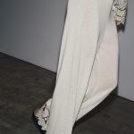- Orta bel ve iç kısmı lastikli belli pantolon. Etek ucunda kontrast kroşe tipi aplikasyon detayı.
