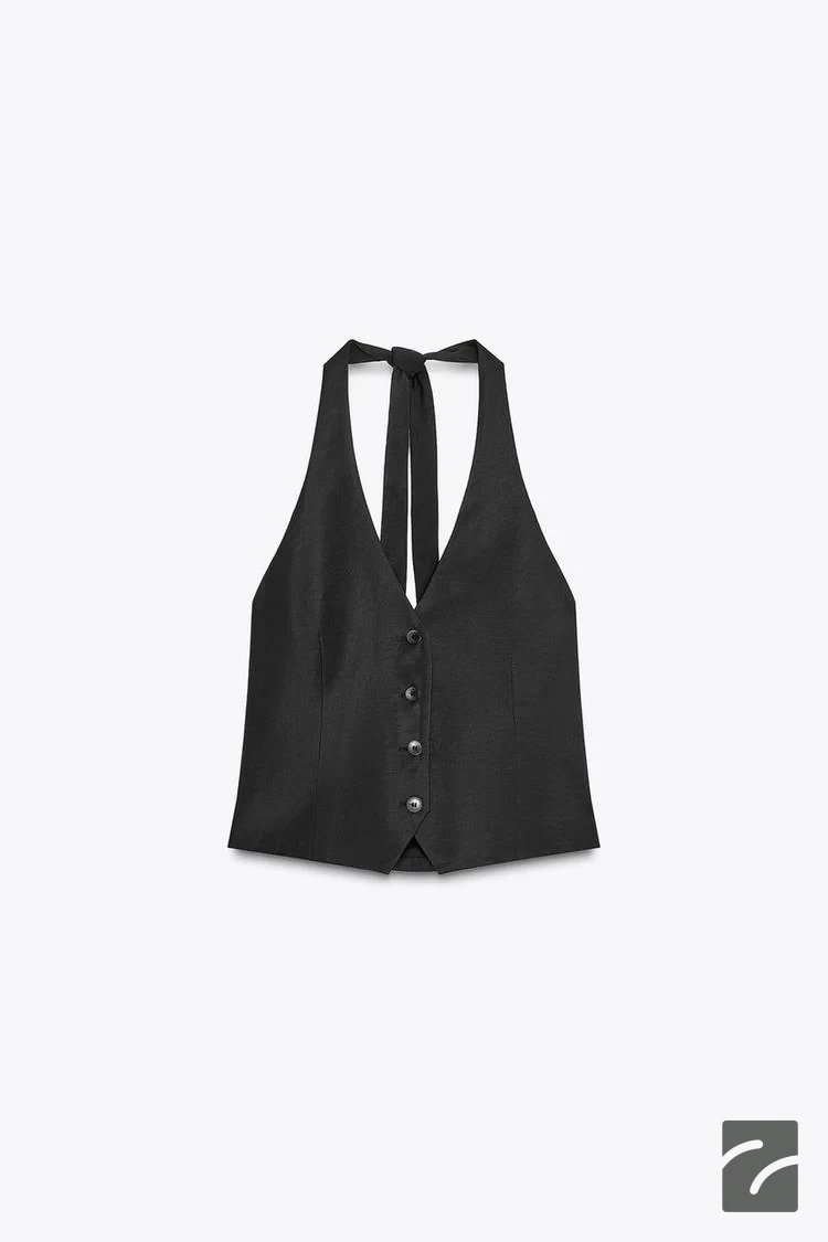 جلیقه کوتاه یقه هالتر با بند قابل تنظ از برند زارا (زنانه)
