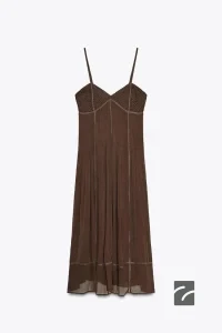 - Dökümlü kumaştan üretilmiş midi elbise. Bağcıklı, ayarlanabilir halter yaka.