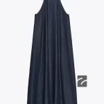 پیراهن بلند با یقه هالتر و زیپ فلزی در قسمت پشت.