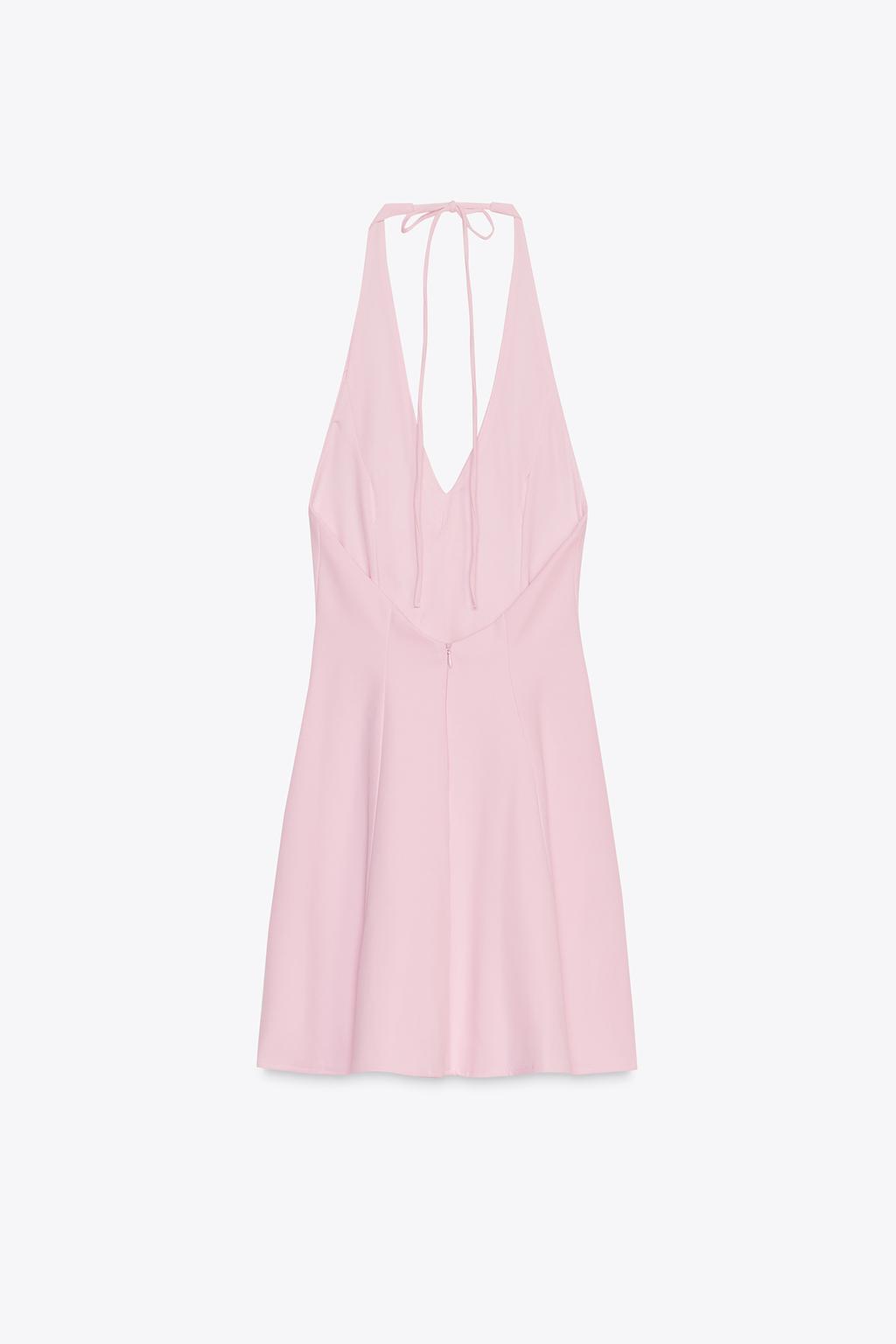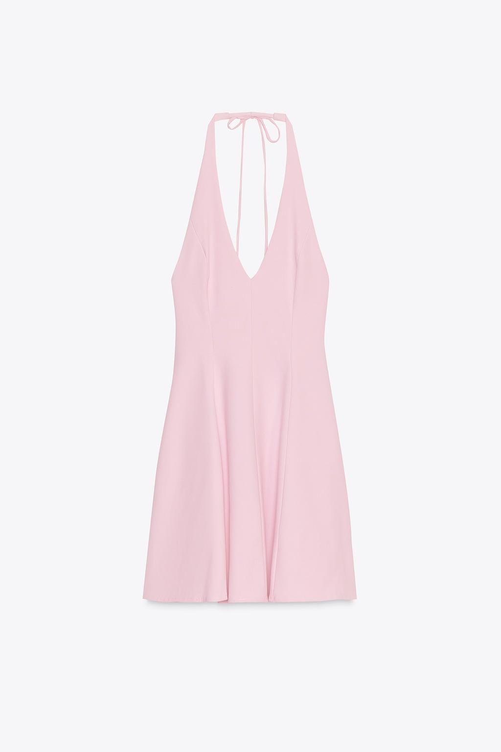 پیراهن کوتاه یقه هالتر با جیب مخفی از برند زارا (زنانه) - XS, صورتی (04661379)