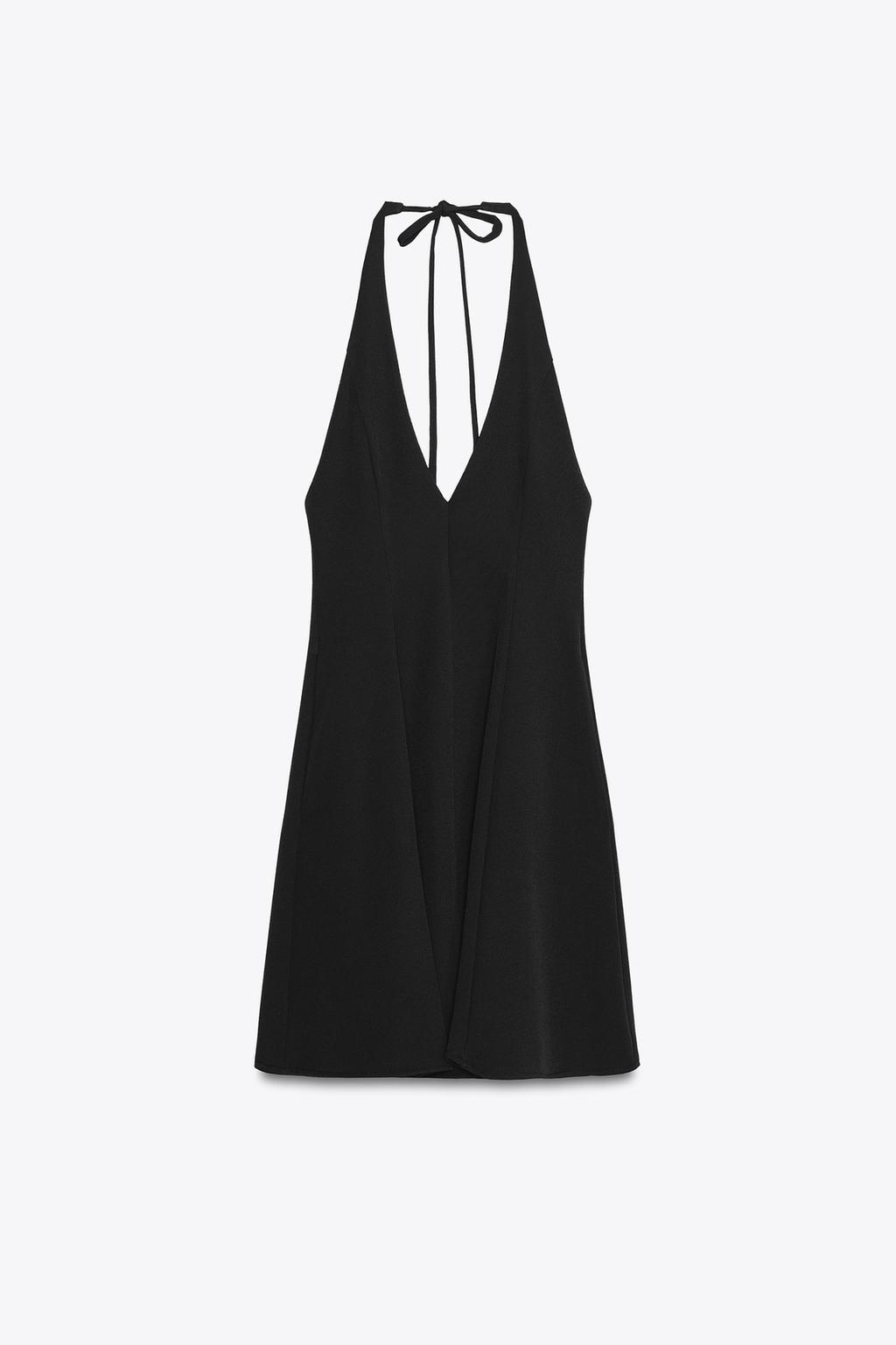 پیراهن کوتاه یقه هالتر با جیب مخفی از برند زارا (زنانه) - XS, مشکی (04661379)