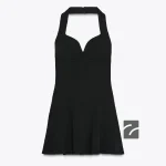 این لباس از پارچه بافت محکم، نرم و غیرشفاف، انعطافپذیر و الاستیک تولید شده است. دارای یقه هالتر و یقه قلبی است. یقه آن دکمهدار میباشد.