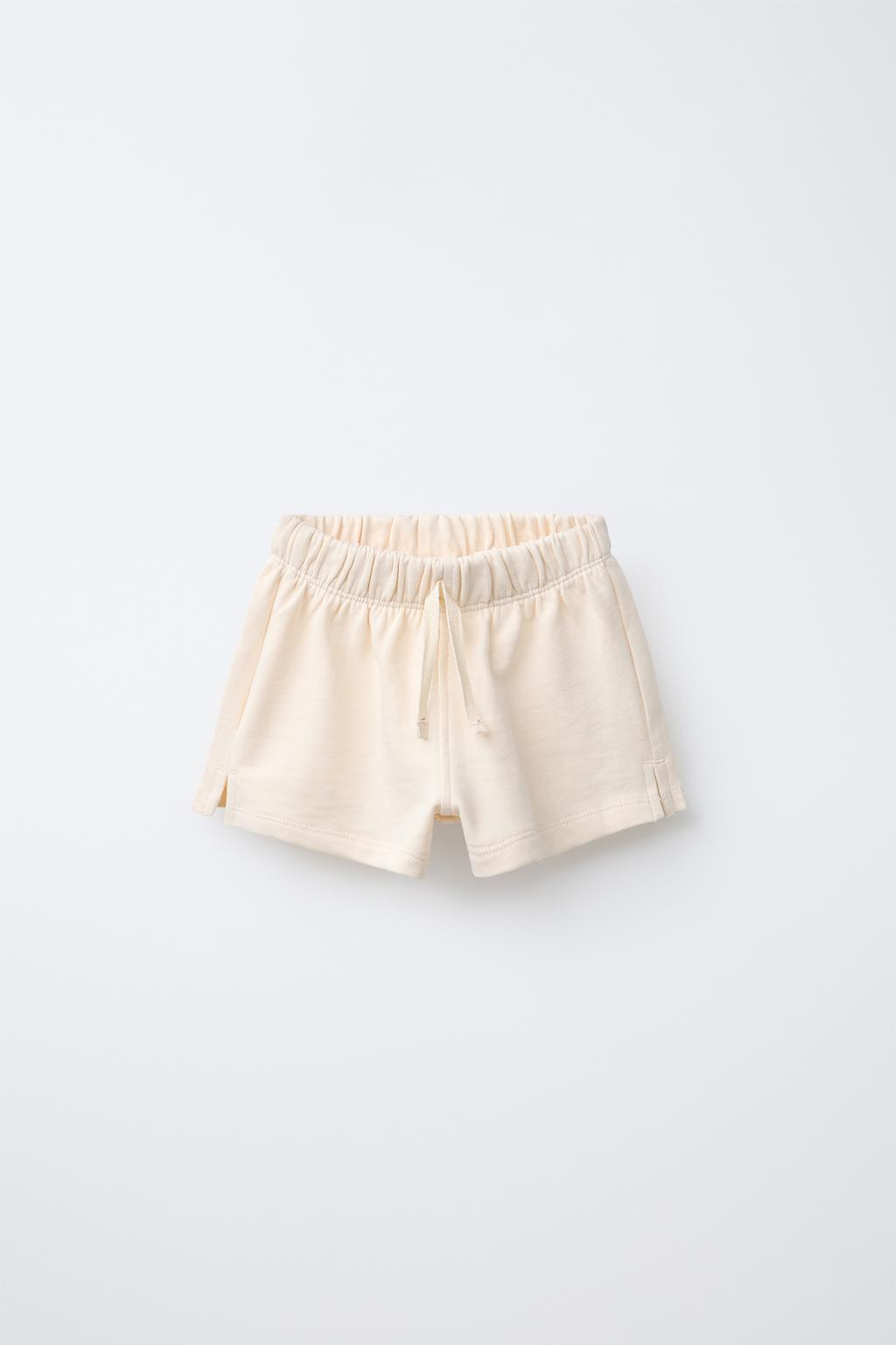 - Elastik belli ve önü bağcıklı iki adet bermuda şorttan oluşan paket. Yan yırtmaçlı etek ucu. Kumaş %90 pamuk.