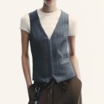- V yaka crop yelek. Ayarlanabilir askılı açık sırt detaylı. Önde biyeli cepli. Önden metal kancalı kapamalı.