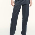 شلوار متوسط بلندی با جزئیات دامن مینی. دارای کمربند نازک با قفل فلزی. بسته شدن با زیپ مخفی در درز کناری.