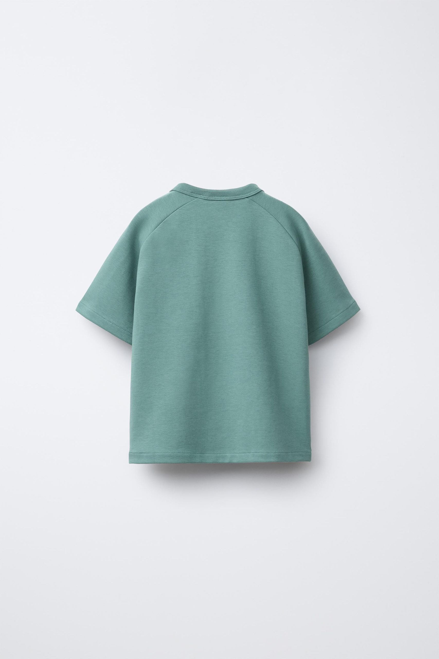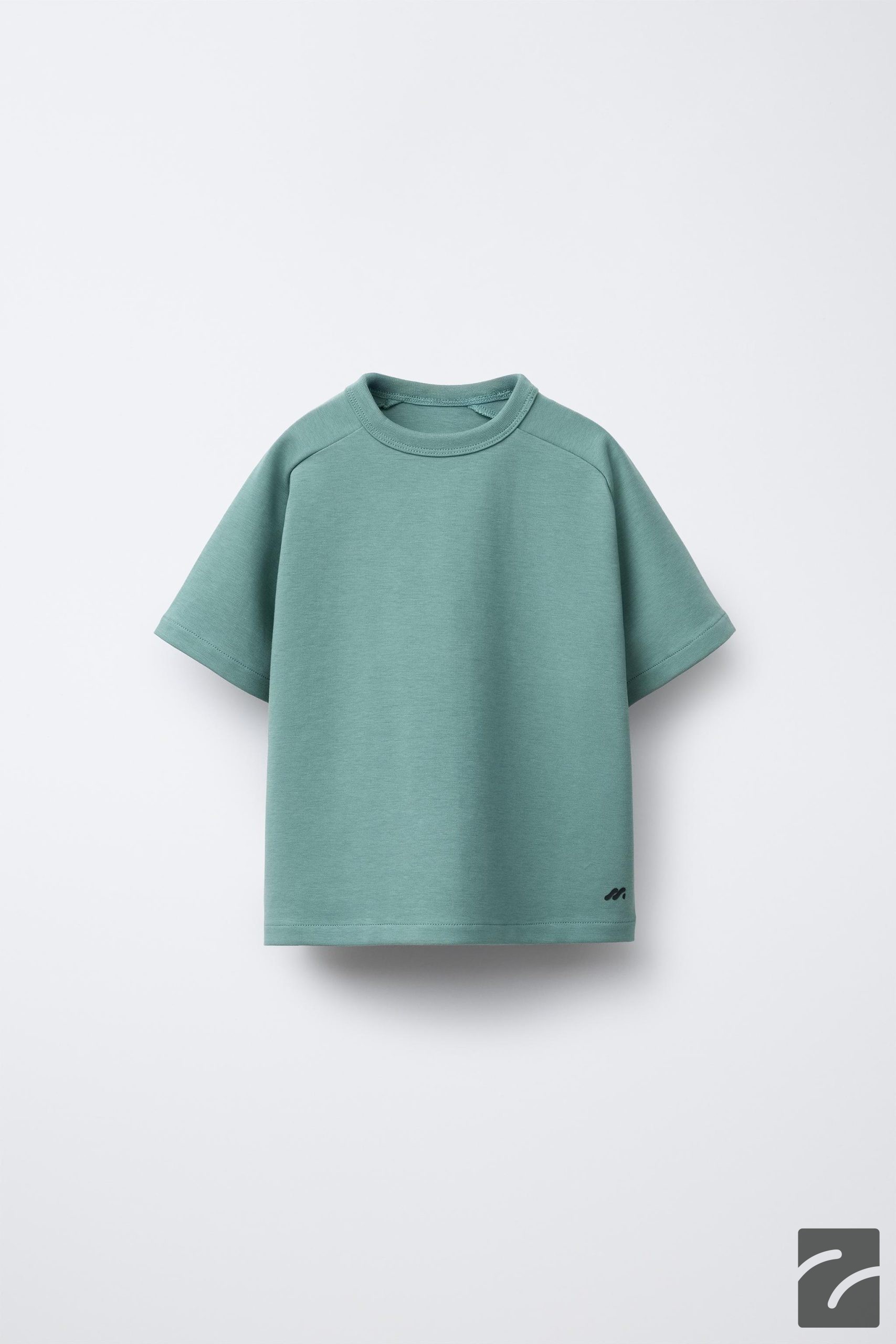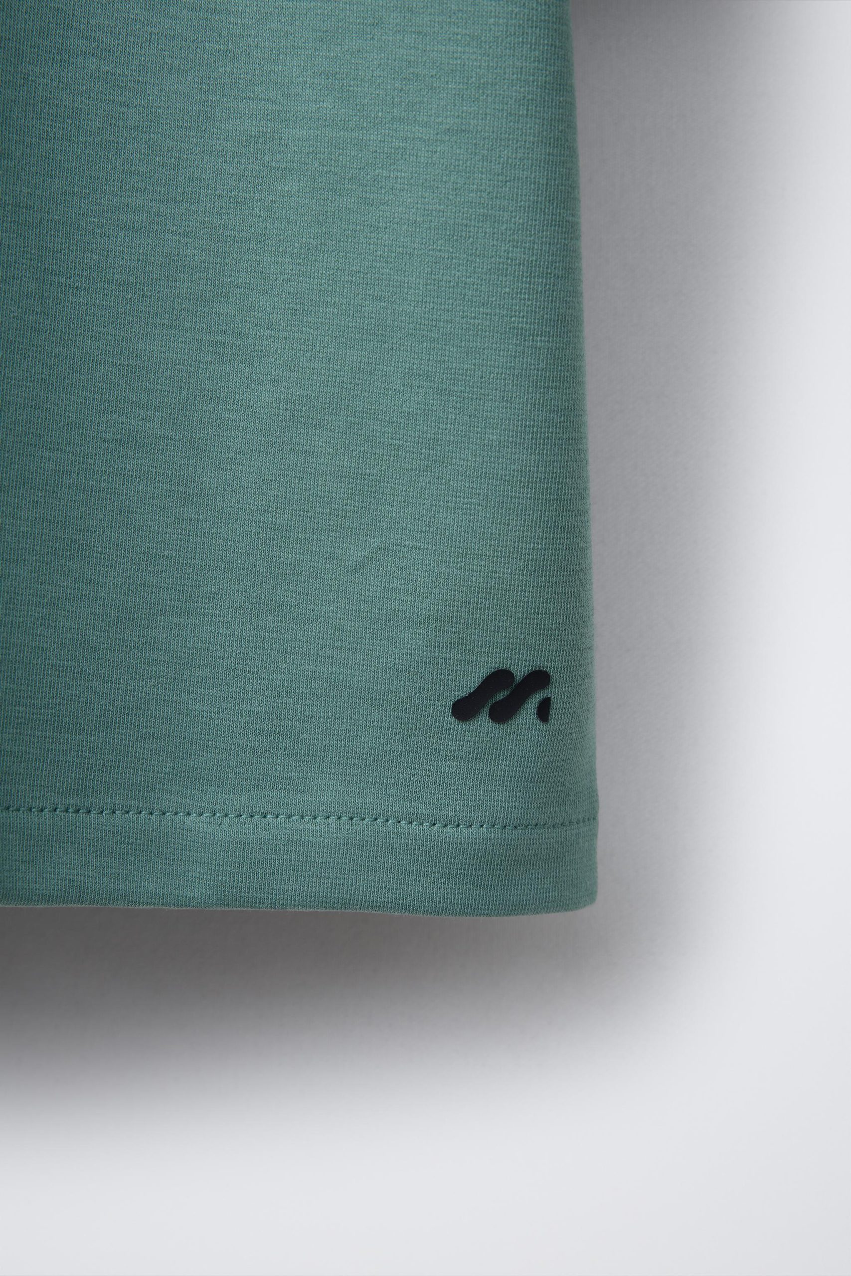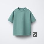 تیشرت یقه گرد کوتاه با آستینهای کوتاه، دارای لوگوی چاپی در انتهای لباس و تهیه شده از 95% پنبه.