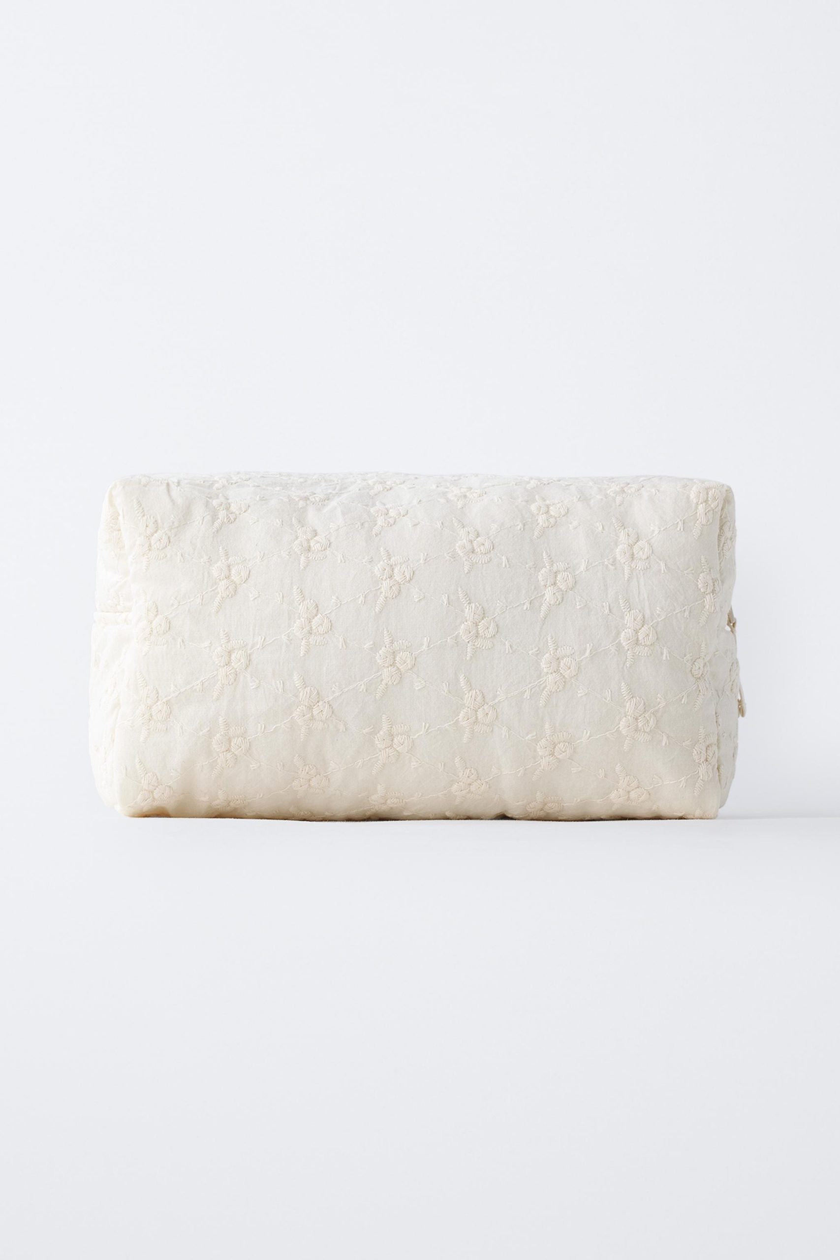 کیف آرایش زیپ‌دار با گلدوزی گل از برند زارا