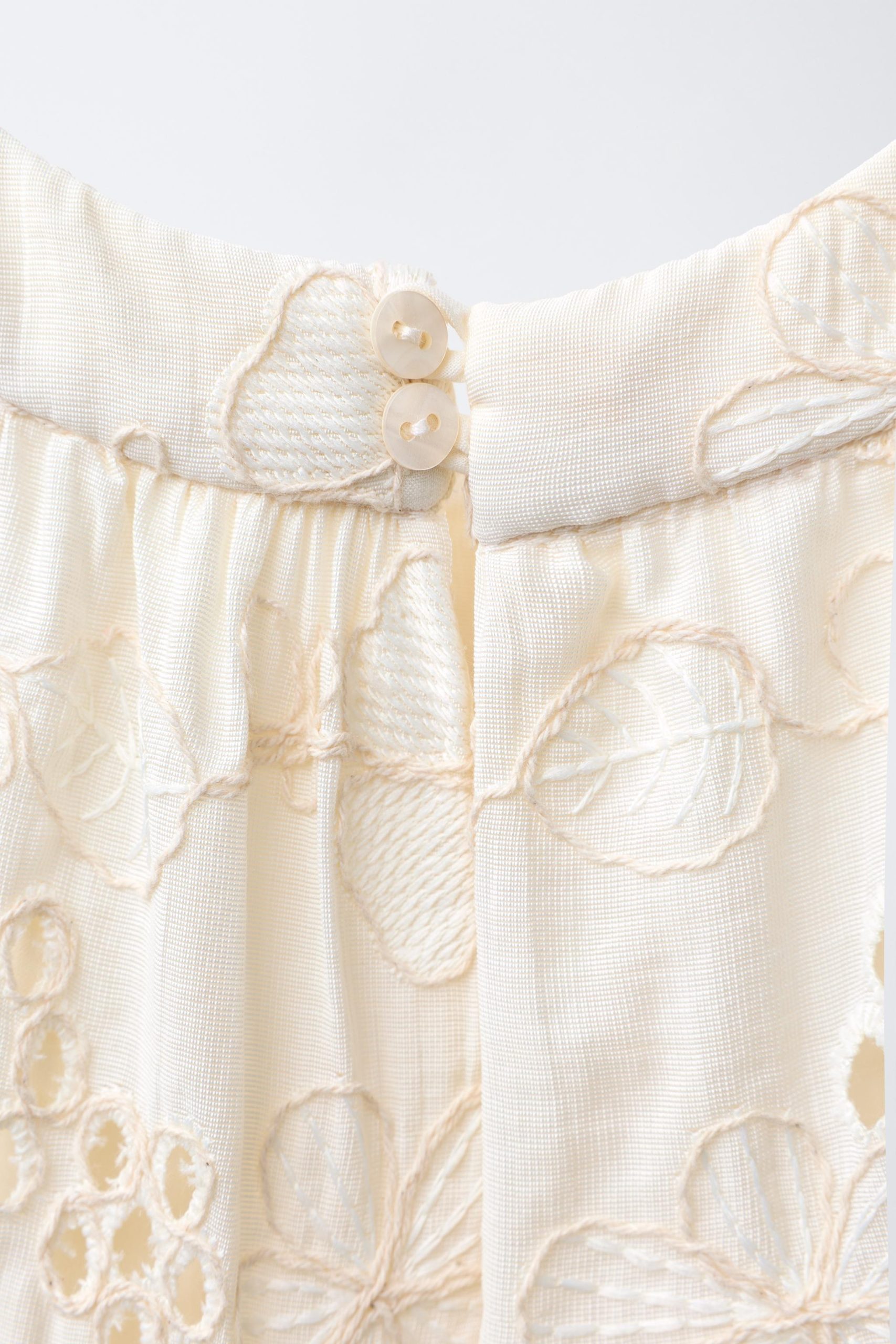 - Bisiklet yaka, kısa kollu elbise. Sırtı yırtmaçlı ve düğme kapamalı. İşlemeli çiçek detaylı. Uyumlu iç astarlı.