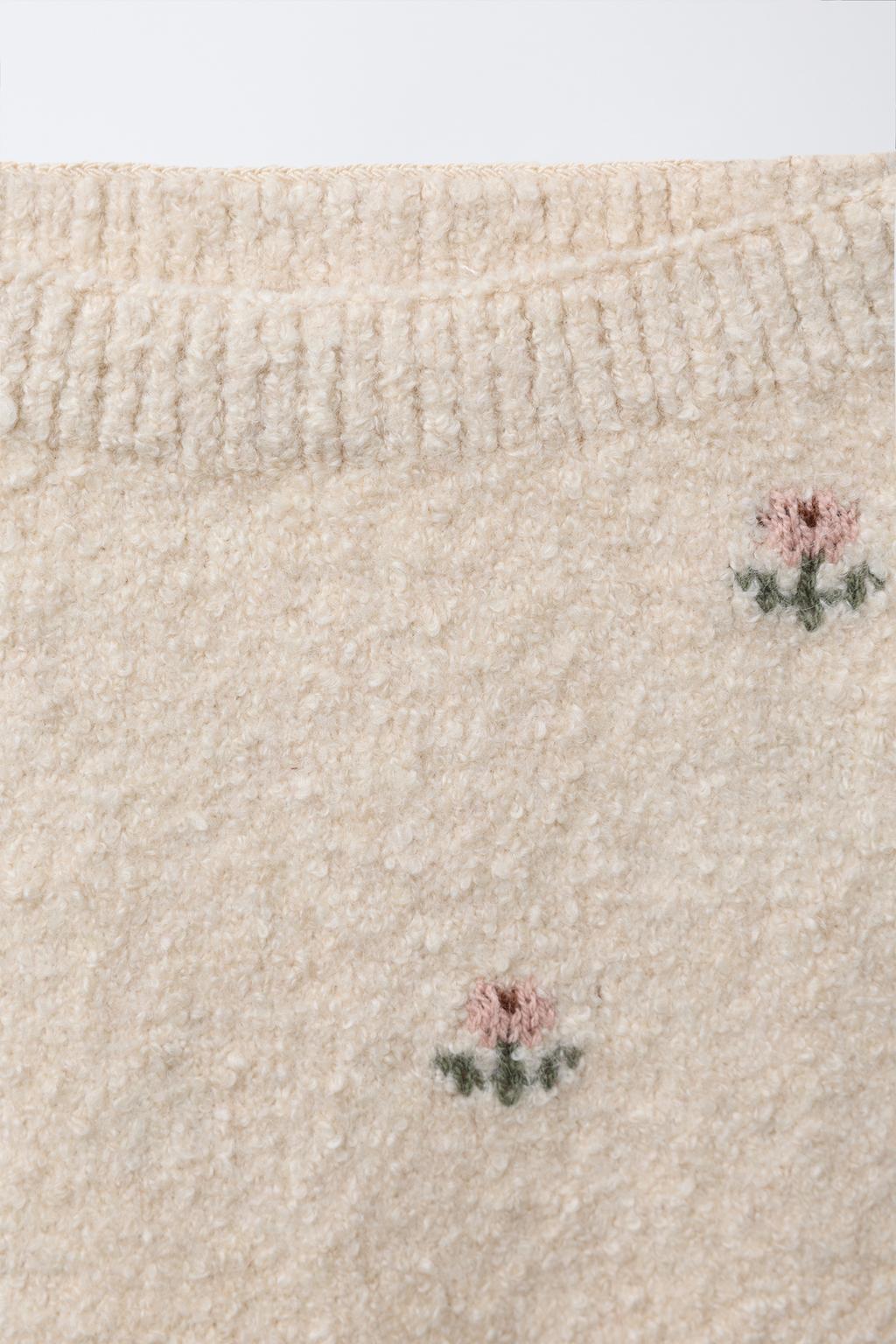 - Elastik belli pantolon. Fırfırlı paça. İşlemeli çiçek detaylı.