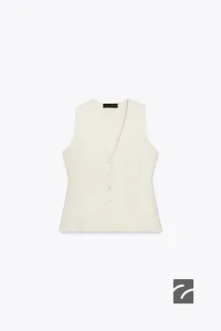 ژاکت با یقه گرد و آستینهای بلند بافتنی. دارای بسته شدن دکمهای در قسمت پشت. با جزئیات برجسته فیل.