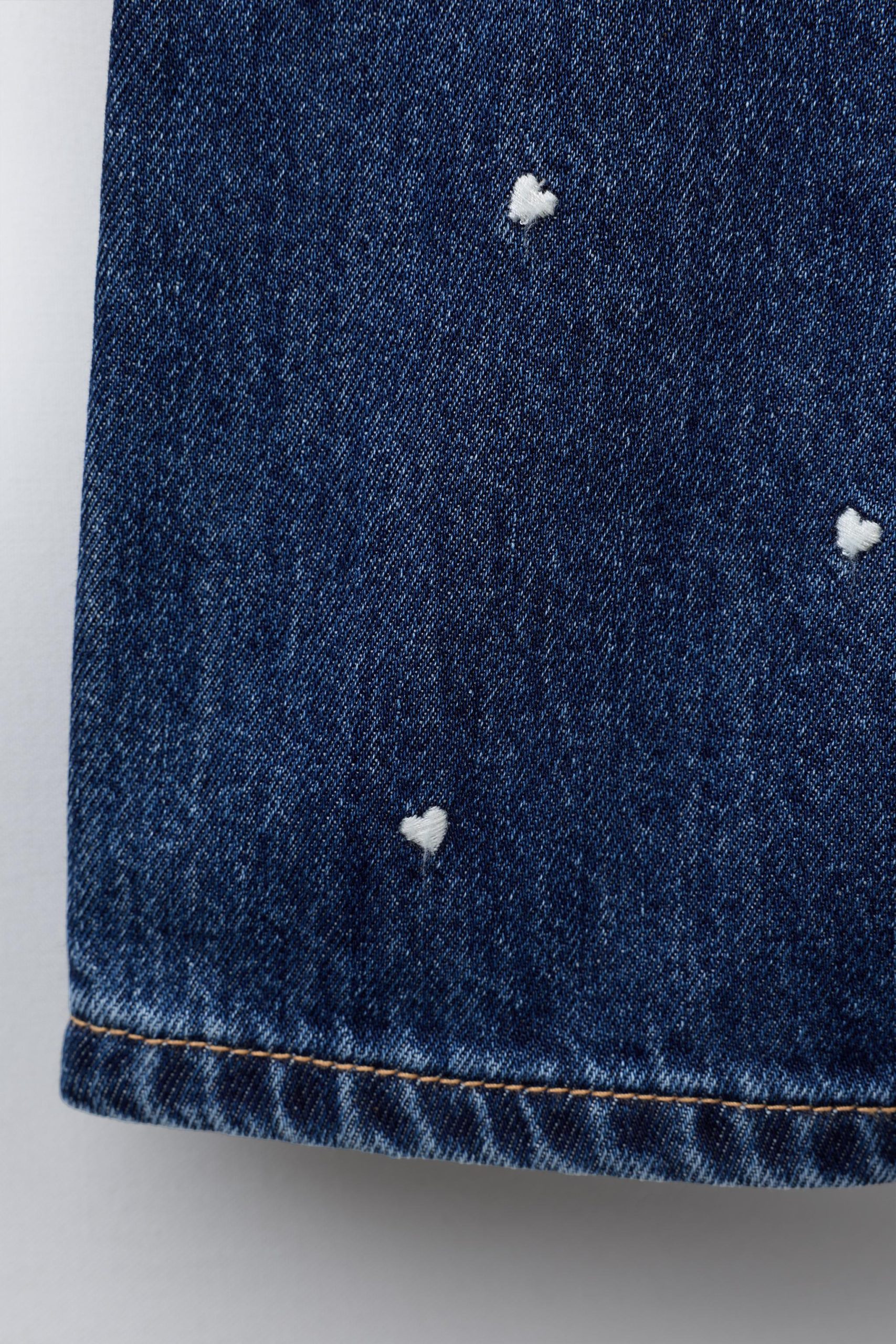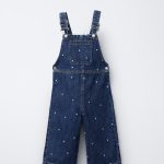 - Ayarlanabilir askılı, tokalı kapanışlı, düz yakalı denim salopet. Yanları çıtçıt düğmeli. Göğüs kısmında yama cep detayı. İşlemeli kalp detayı.