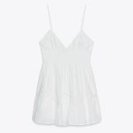 - %100 pamuktan üretilmiş kısa elbise. V yaka ve ayarlanabilir ince askılı. İşleme ve pile detaylı. Kombine edilmiş iç astar. Yan dikişte gizli fermuarlı kapama.
