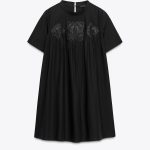 Pamuk iplikten üretilmiş kısa elbise. Yuvarlak yakalı ve kısa kollu. Önü aynı tonda nakış detaylı. Düz etek ucu. Arkası yırtmaçlı ve düğme kapamalı.