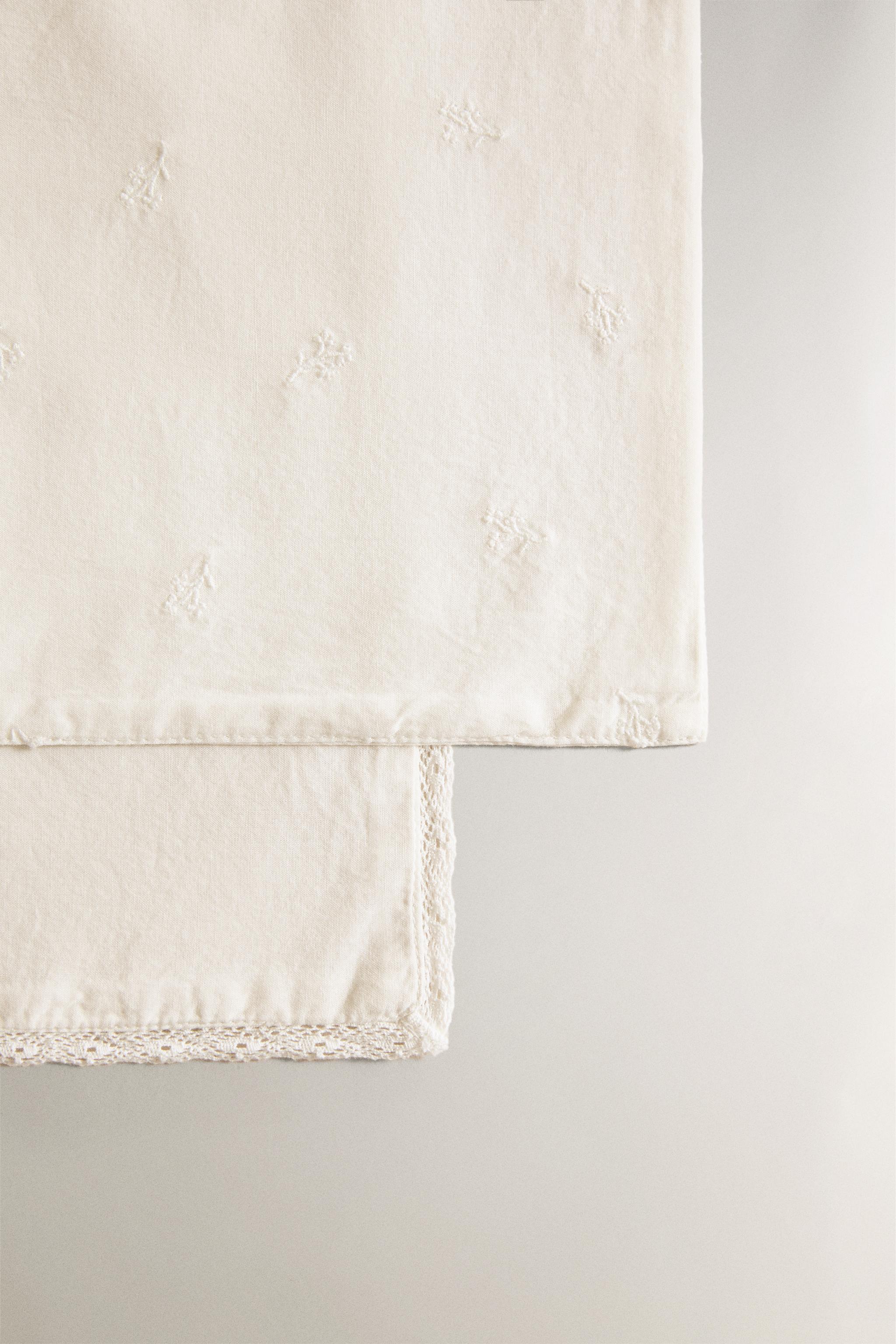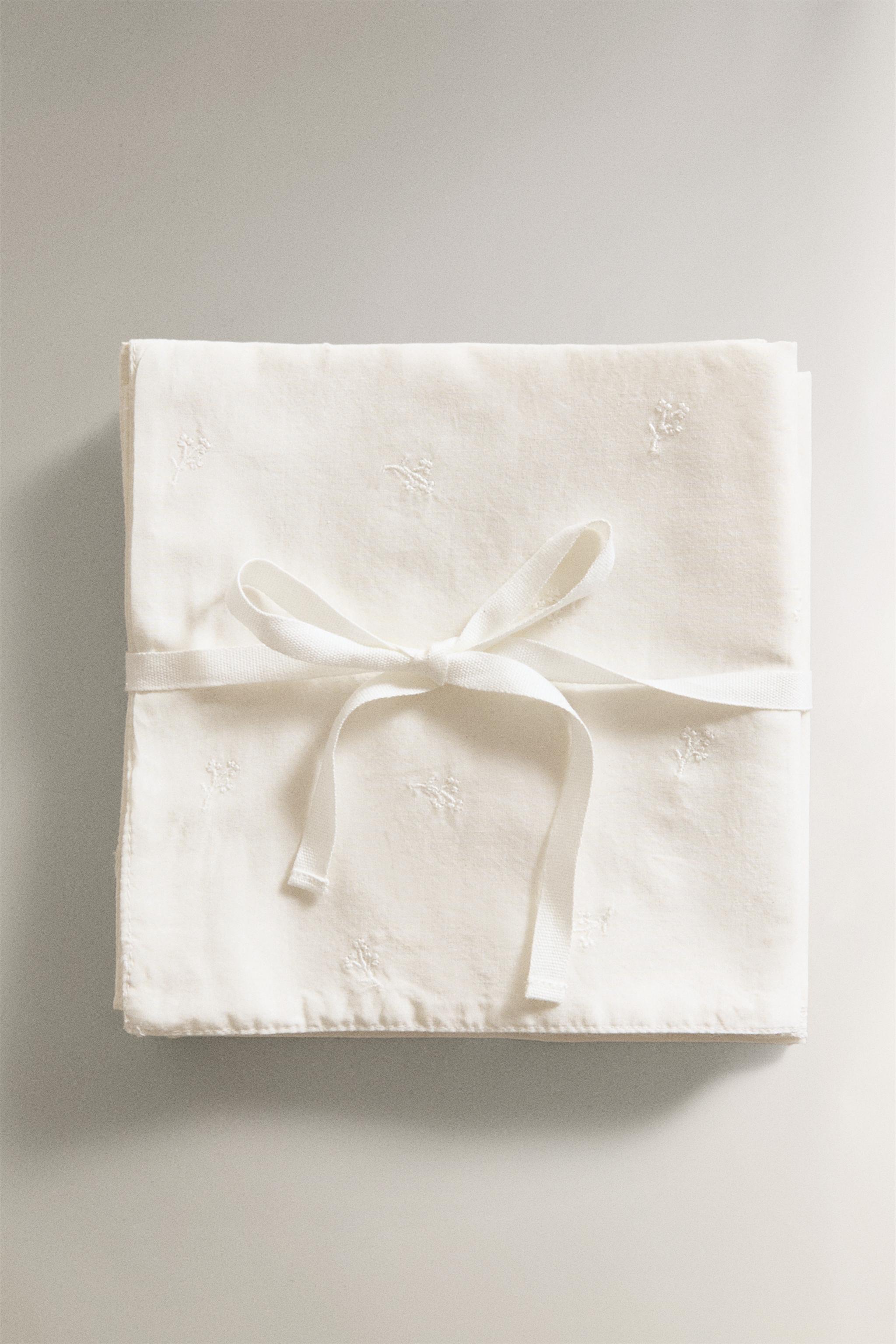 بسته دو عددی پارچه توری نوزاد، یکی با طرح گلدوزی و دیگری با لبههای دانتلی از جنس پنبه.
