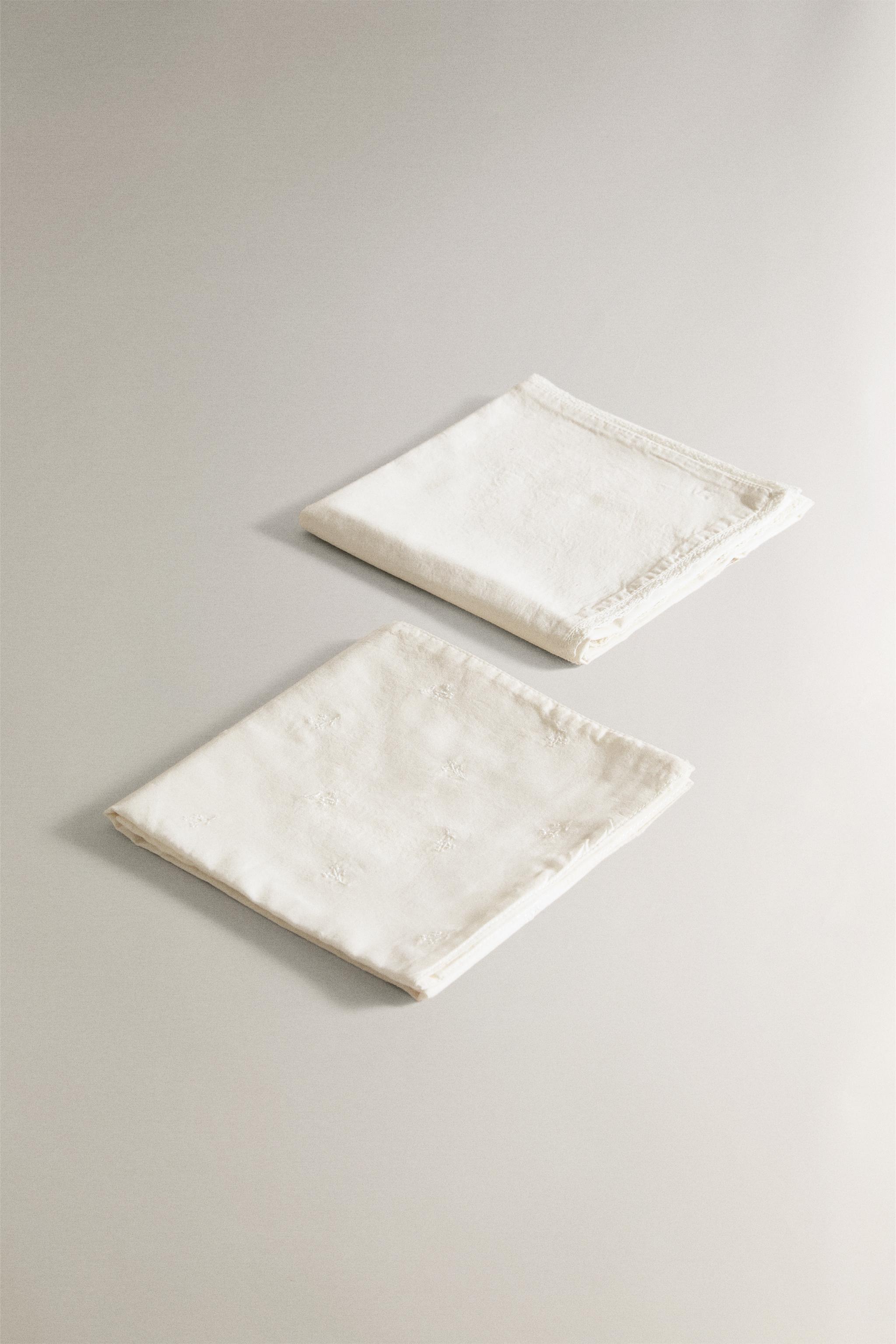 Biri işlemeli, diğeri kenarları dantelli, pamuklu bebek tülbent bezi ikili paketi.