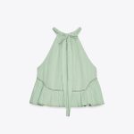Halter yakalı, bağcıklı üst. Ton sür ton işlemeli detay.