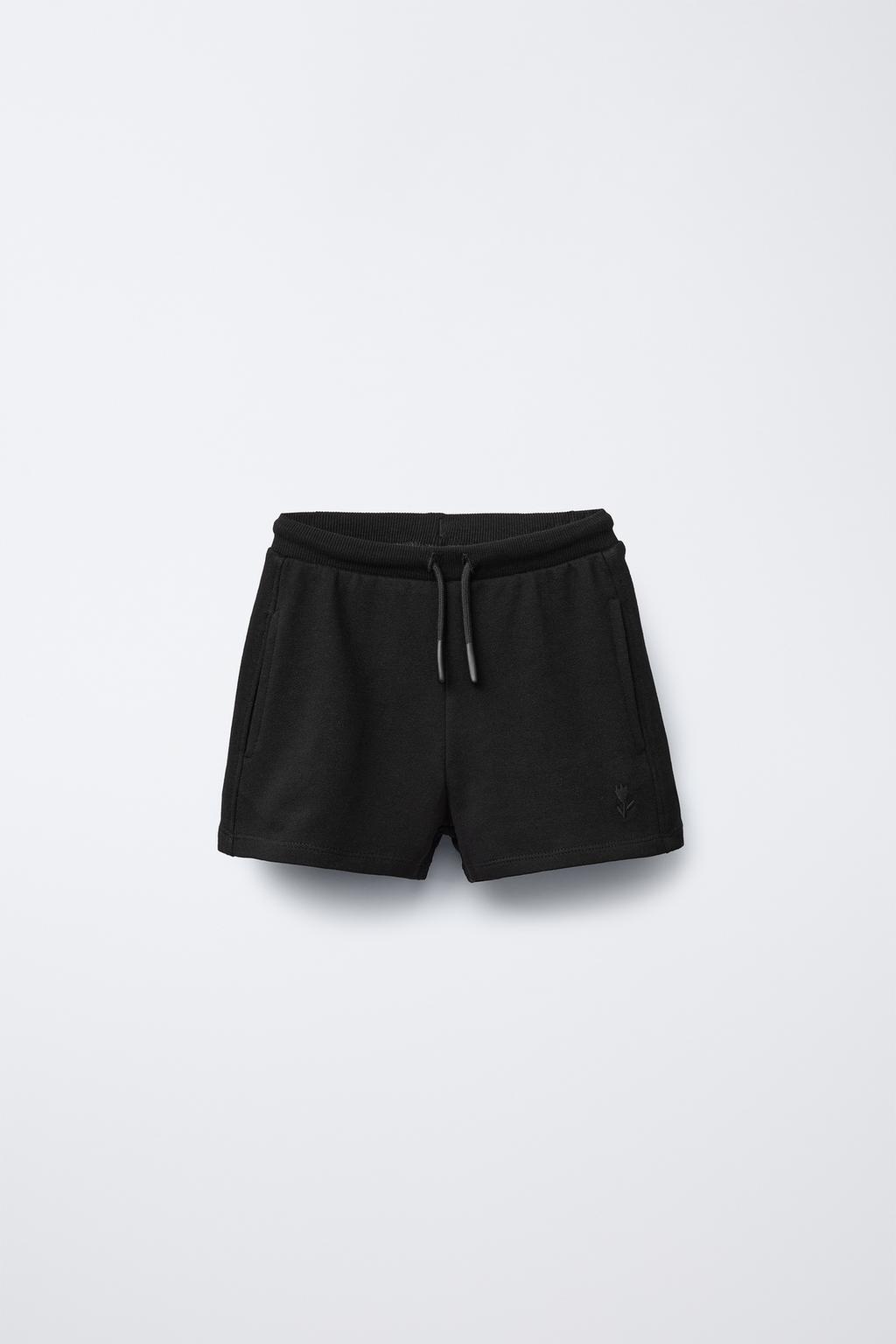 - Önü ayarlanabilir büzgü ipli ve elastik belli penye bermuda şort. Biyeli ön cepler. Etek ucu çiçek işlemeli.