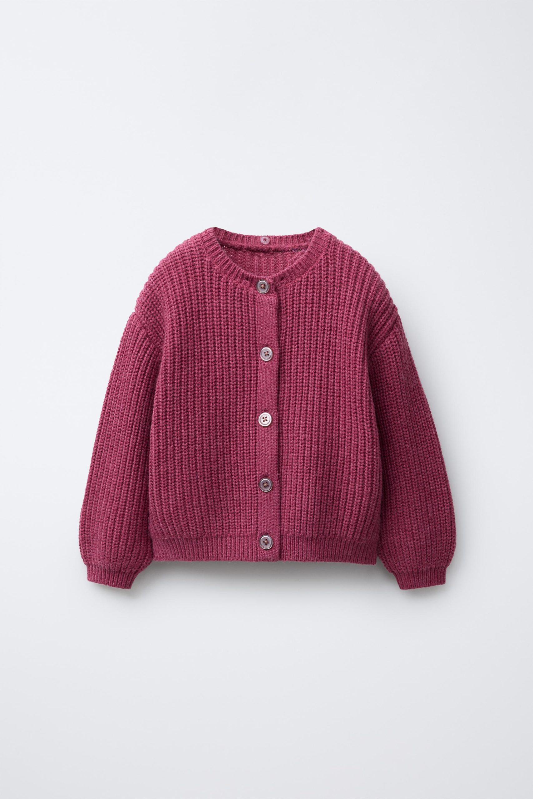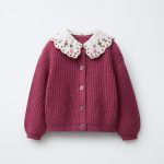 • Bebe yakalı, çiçek işlemeli detaylı, uzun kollu örgü hırka. Önden düğme kapamalı.